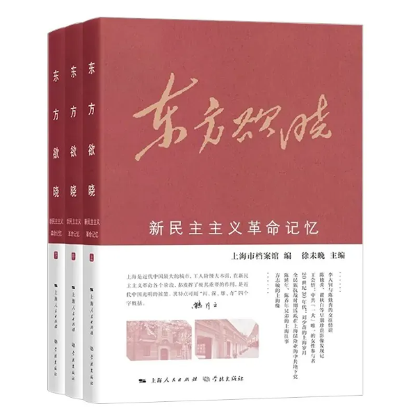 《东方欲晓——新民主主义革命记忆》分“忆人”“叙事”“说物”三册,内容主要聚焦建党时期和中共中央在沪期间,追忆建党先驱、体现先烈的情感世界、展现革命者之间的深厚情谊、反映艰苦卓绝的对敌斗争……其中吸收了不少近年党史研究的新成果,归集了部分亲见、亲闻、亲历者的回忆记录,不乏一些鲜为人知的历史细节。全书选配图片近三百幅,图文并茂,以人示范、以事寄情、以物证史,助力将红色基因融入城市血脉、厚植人民心中。